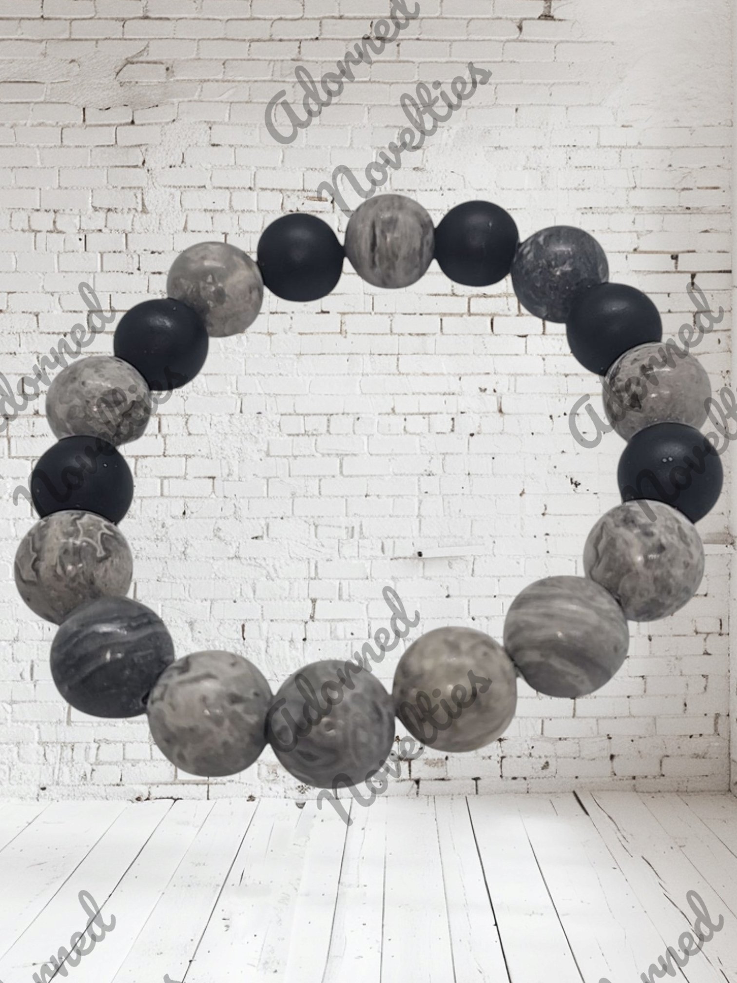 ANA826190 - Gray Silk Jasper and Matte Black Bead Bracelet