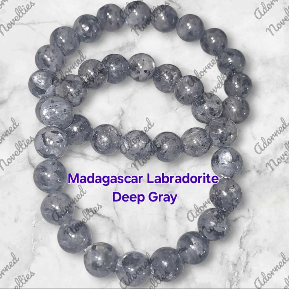 Madagascar Labradorite Deep Grey 10MM bead bracelet.