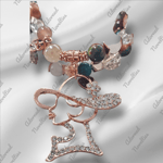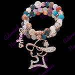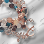 Various earthtone glass and rhinestone and rose gold spacer beads.
