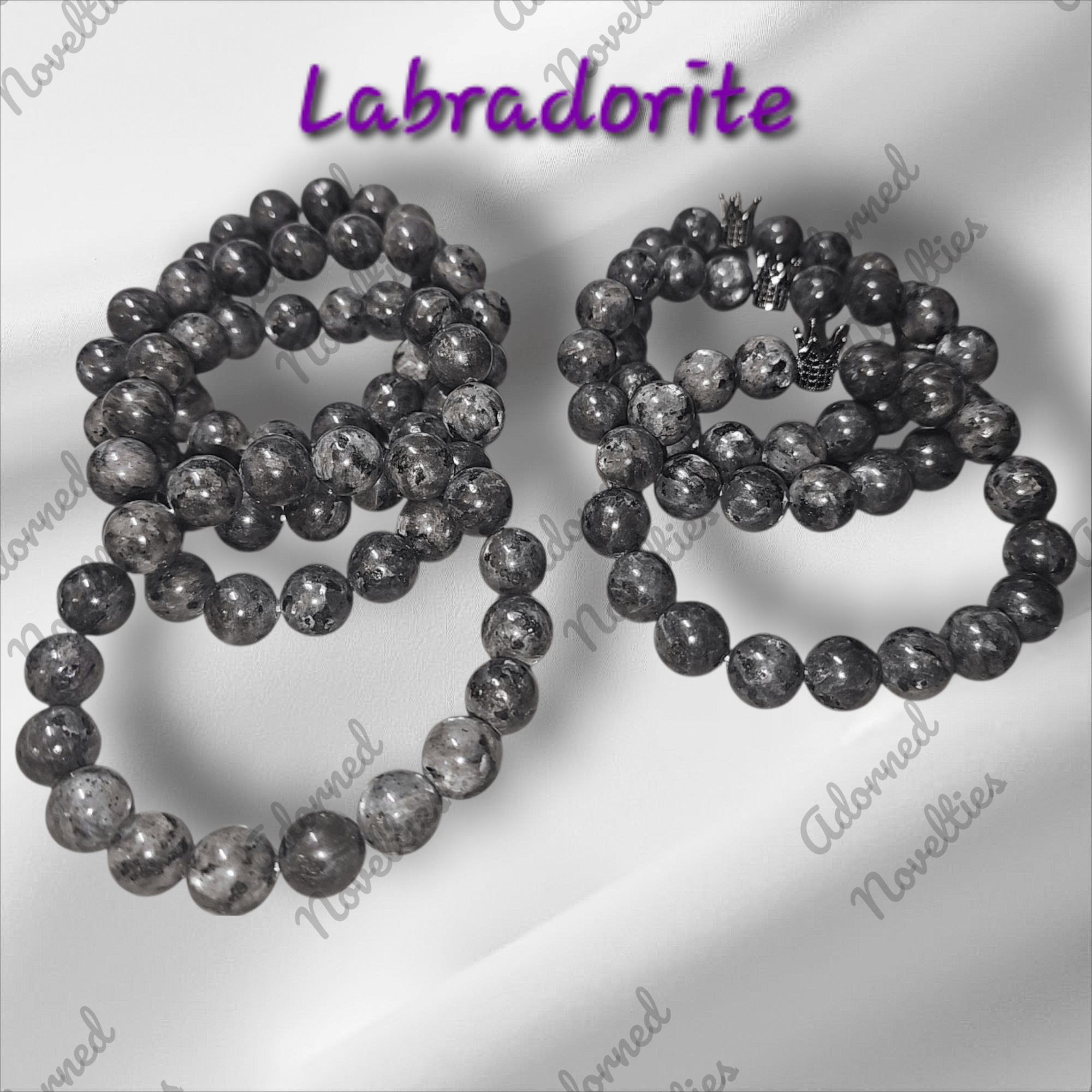 Handmade elastic bracelet made using madagascar labradorite deep grey 12MM bead bracelet.