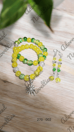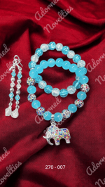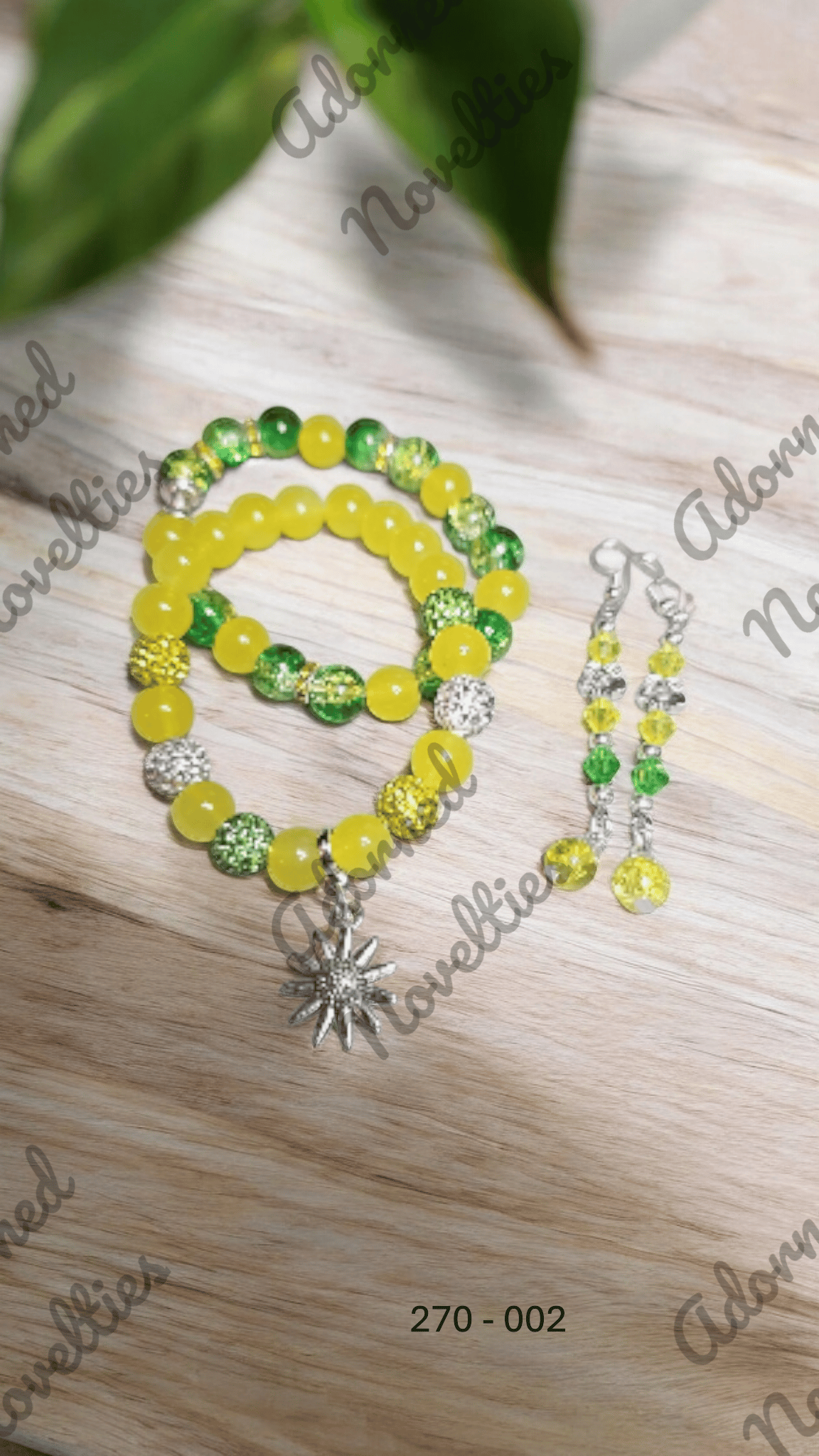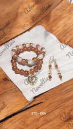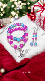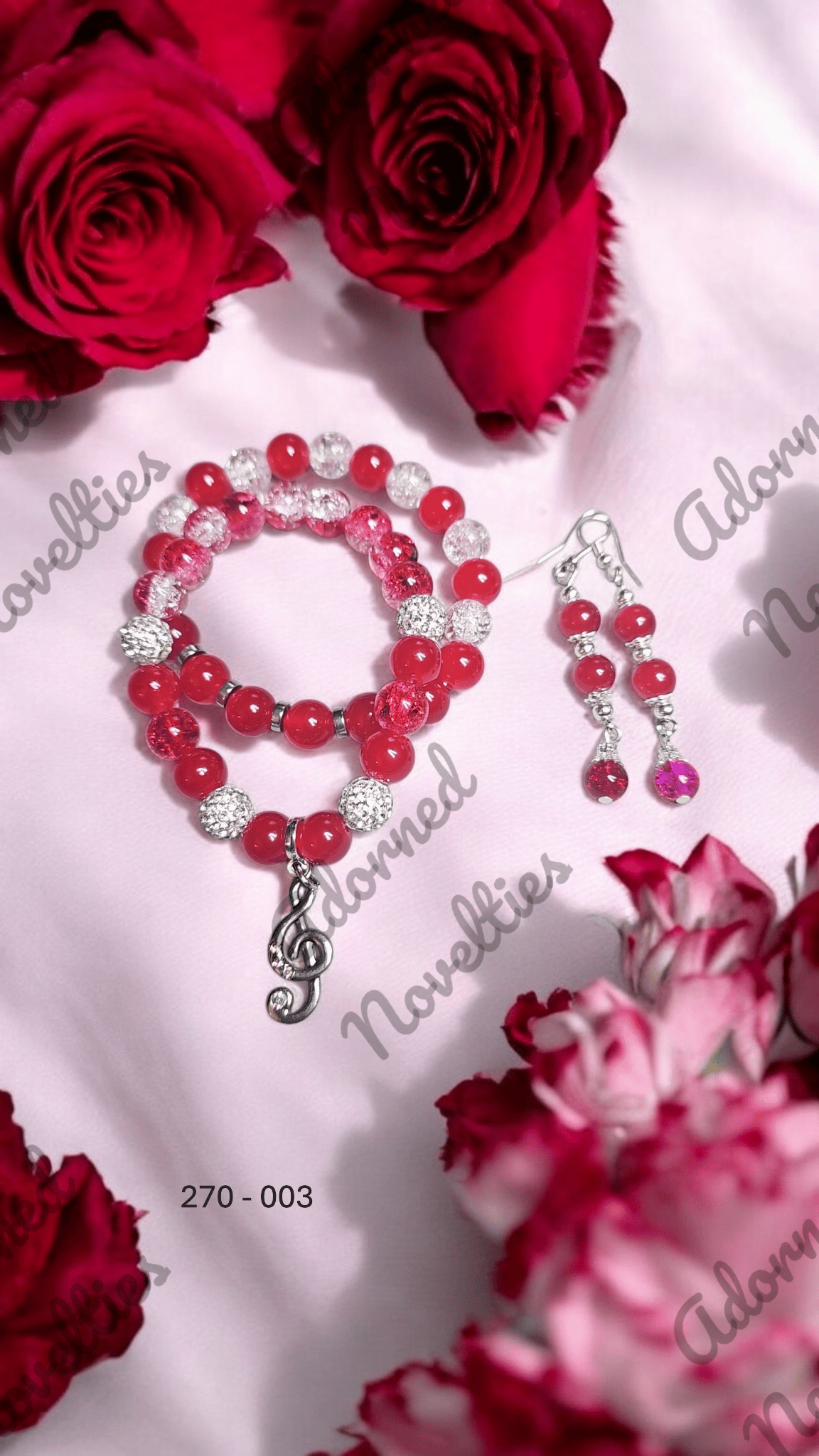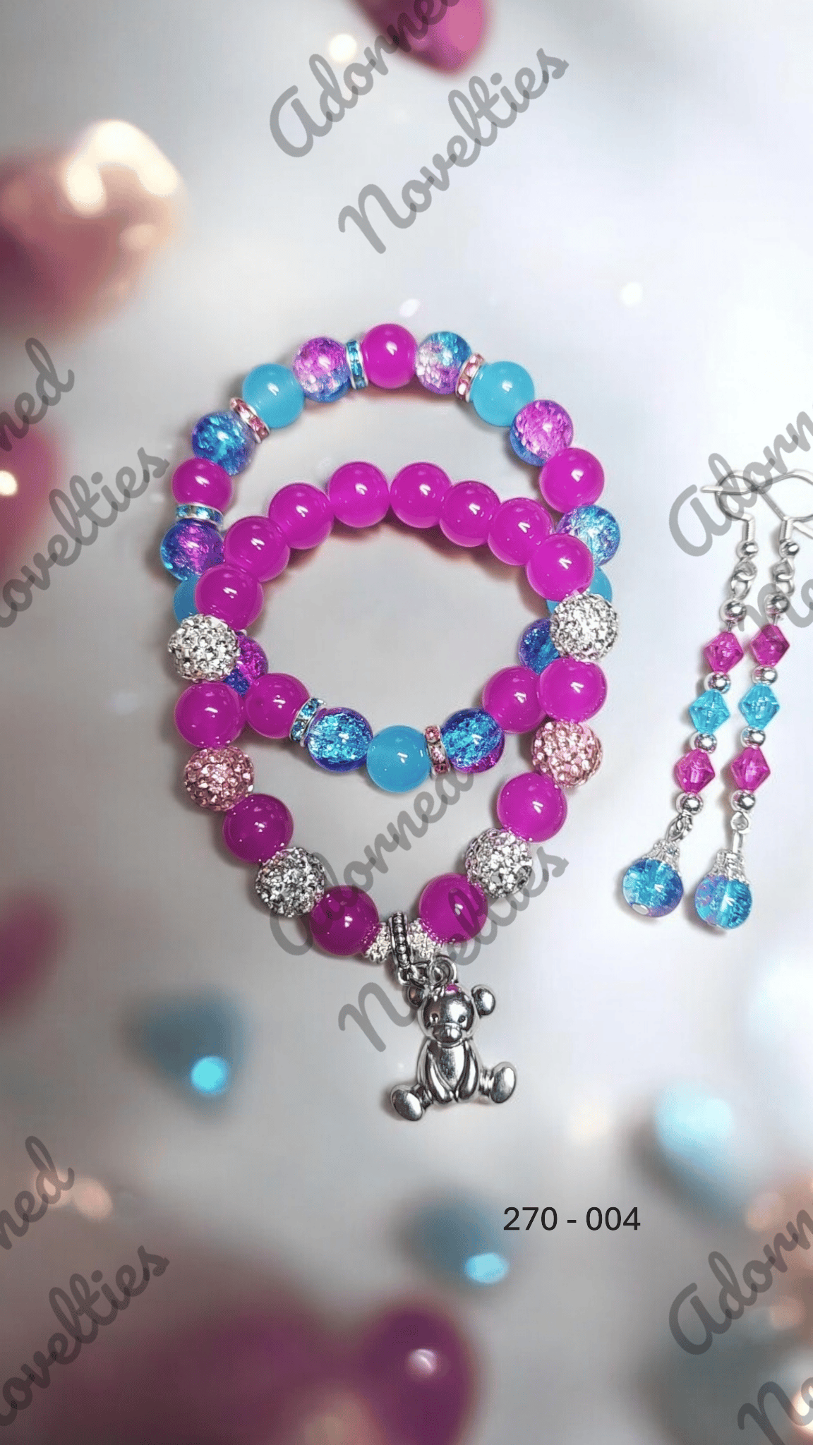 Handmade elastic bead bracelets created using 10mm glass, and rhinestone beads with accent beads and charms accompanied with matching earrings. Bracelets are approximately 7 inches.